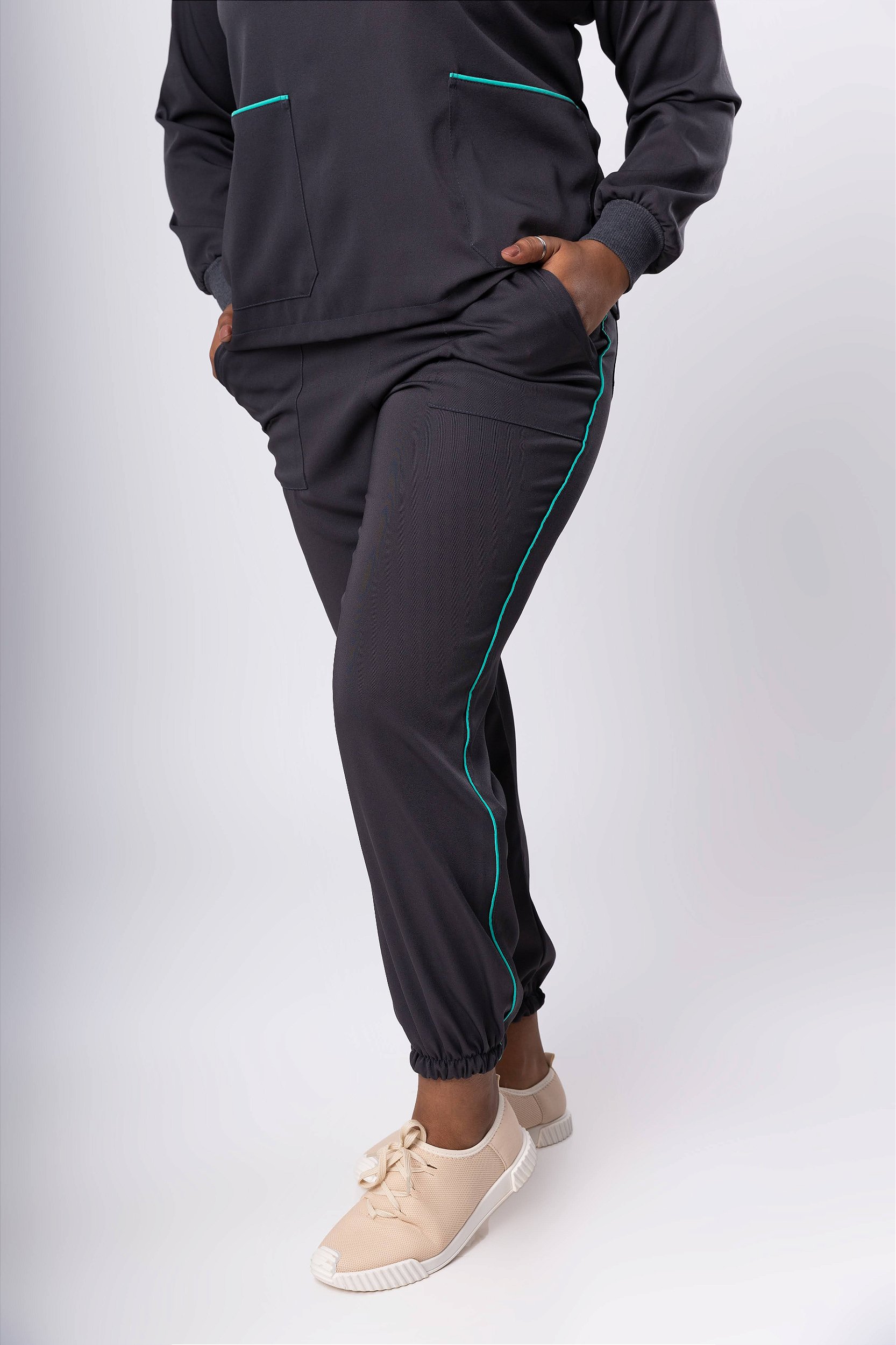 Possui tiras de tecido nas laterais da peça para acinturar, além de punho para maior vedação com o uso de luvas.
